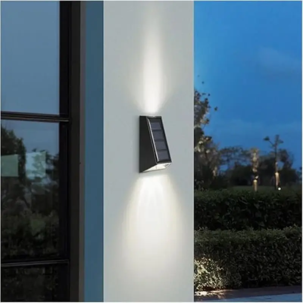 This solar powered solar up & down wall sconce provides stylish and functional lighting by illuminating the wall both up and down. It can be used safely outdoors without the need for electrical connection.