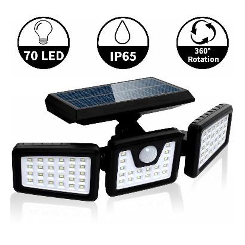 Güneş enerjisi ile çalışan bu 3 gözlü solar duvar apliği, hareket sensörü sayesinde çevrede hareket algılandığında otomatik yanar. Geniş alanları aydınlatmak için ideal, enerji tasarruflu ve kablosuz dış mekan aydınlatma çözümüdür.