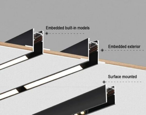 Magnet ray aydınlatma sistemleri için özel olarak tasarlanmış bu sıva altı montaj profili, 2 metre uzunluğu ile geniş alanlarda kesintisiz ve estetik uygulamalar sağlar. Tavan veya duvar içine gömülerek daha temiz ve bütünleşik bir görünüm elde edilir.
