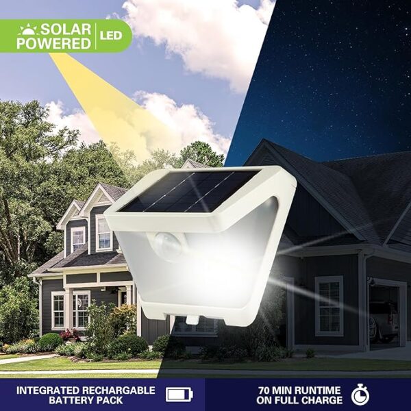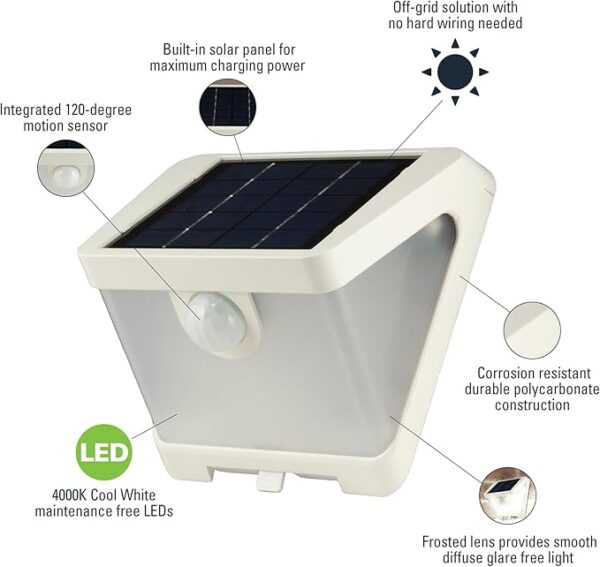 Güneş enerjisiyle çalışan bu solar duvar apliği, 36 LED ile güçlü ve soğuk beyaz ışık sağlar. Hareket sensörü sayesinde çevrede hareket algılandığında otomatik olarak yanar. Elektrik bağlantısı gerektirmeden dış mekanlarda güvenli aydınlatma sunar.