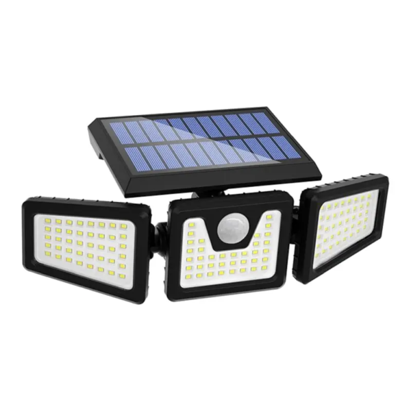 Güneş enerjisi ile çalışan bu 3 gözlü solar duvar apliği, hareket sensörü sayesinde çevrede hareket algılandığında otomatik yanar. Geniş alanları aydınlatmak için ideal, enerji tasarruflu ve kablosuz dış mekan aydınlatma çözümüdür.